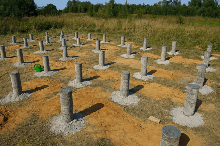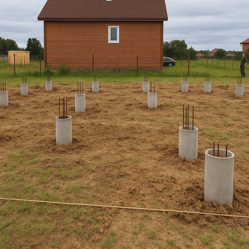Технология фундамента ТИСЭ основана на бурении скважин с уширением основания и армировании с последующей заливкой бетоном. Такой фундамент считается выгодным решением для строительства домов различного масштаба, особенно в условиях слабонесущих или пучинистых грунтов. Мы предлагаем реализацию фундамента ТИСЭ под ключ с соблюдением всех норм СНиП и точной проработкой каждого этапа.