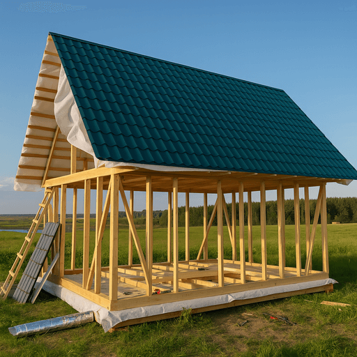 Устанавливается финишное покрытие — металлочерепица, профлист, ондулин или другой материал. Учитываем уклон, стык примыканий, герметизацию. - Финишные работы и сдача объекта